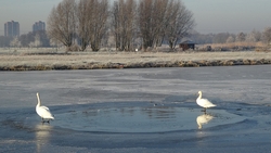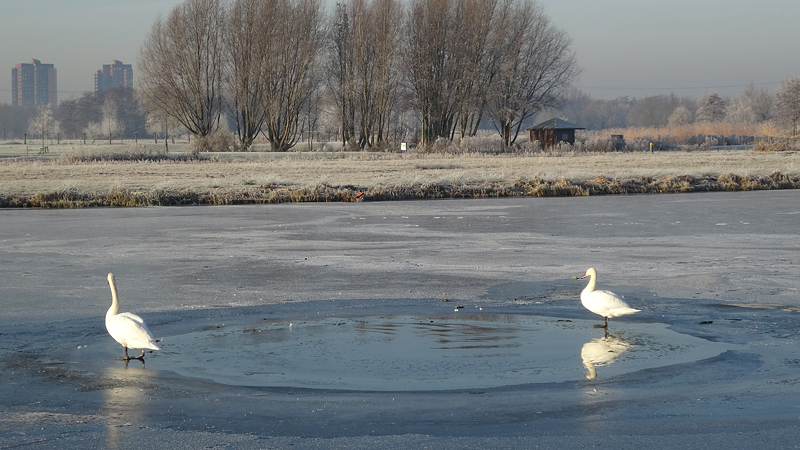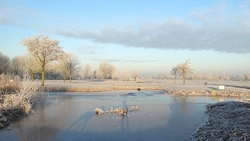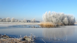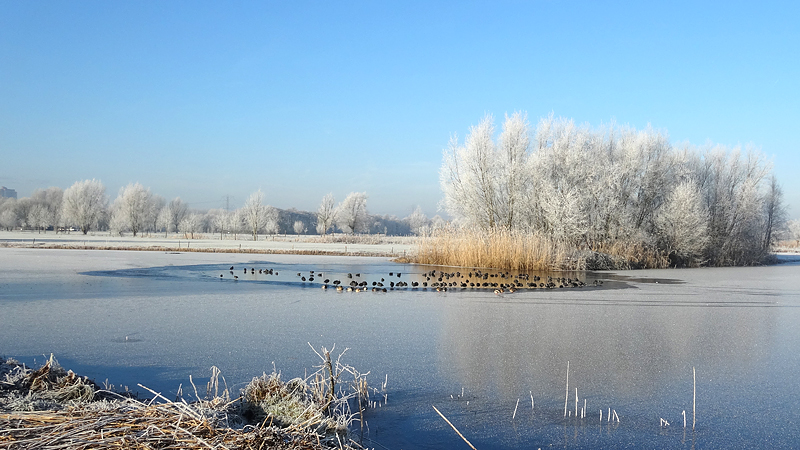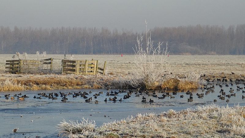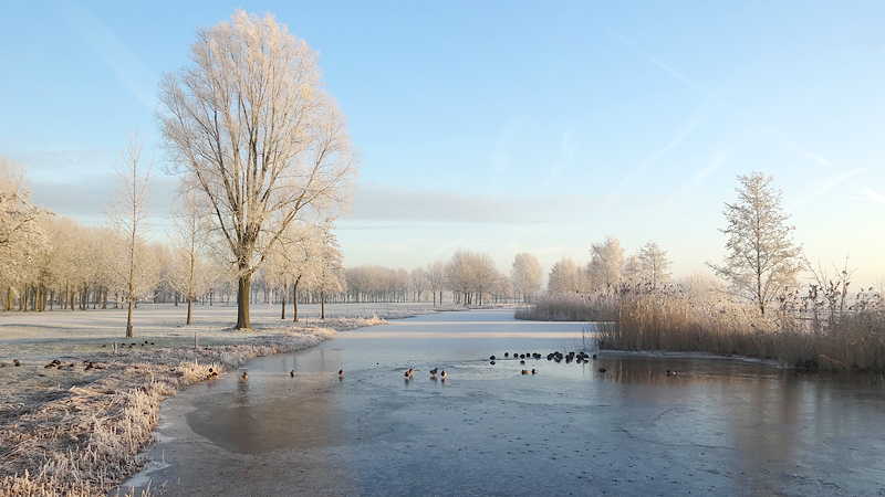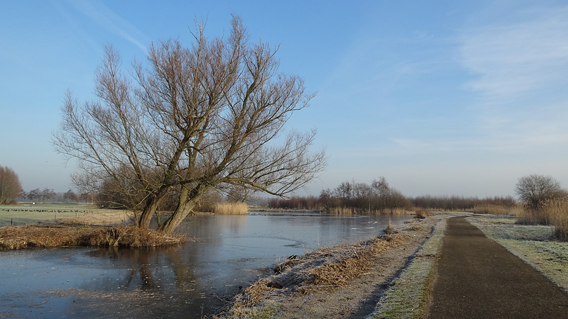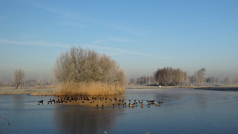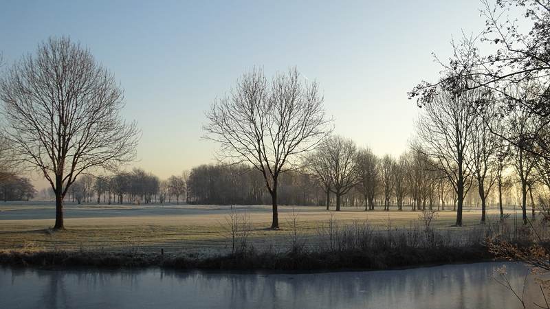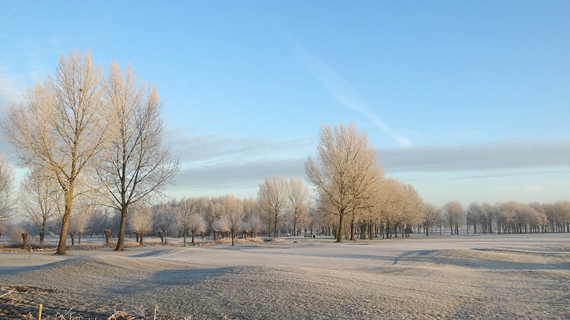 Gisteren hebben we een rondje van 20 km gelopen en dat was erg fijn. Vandaag gaan we weer op pad en ik heb nog geen idee wat we zullen gaan lopen. Normale mensen lopen misschien wat korter na 20 km maar laten we maar eens kijken hoe het gaat. Het is ook vandaag weer prachtig met ruige rijp en het lijkt erop dat straks de zon doorbreekt en het veel lichter zal zijn dan gisteren. Ik ben erg benieuwd. Wederom weinig wind dus dat is heerlijk en hoewel het min 3 is, voelt het verder prima.