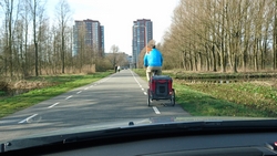 Ik rijd weer met wafje naar huis en S. rijdt met de kar naar huis.
