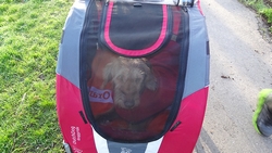 Woef blijft het de hele weg goed doen gelukkig. Misschien morgen met de doggyride rennen. Moet kunnen want we hebben een duwstang en voorwiel. Morgen maar kijken.