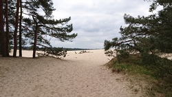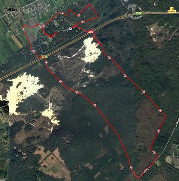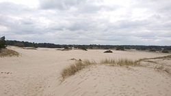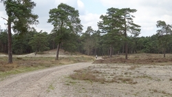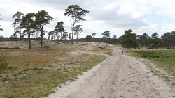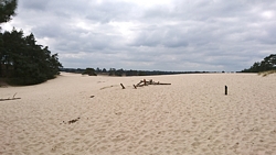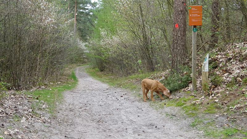 Ik had een 12 km rondje uitgezet over de zandverstuiving bij Hulshorst. Dat leek me leuk om te bekijken. Eerst kwamen we langs het Belvederebos dat dus praktisch naast het huis ligt. Daarna het spoor en de snelweg over en dan ben je al in het natuurgebied. Even wat plaatjes schieten natuurlijk!