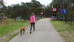 Vandaag zijn we een stukje van huis weg omdat we naar een huis kijken dat we vorige week bezichtigd hebben. We willen vandaag de zonligging bekijken en een heleboel meten en ervaren. We hadden afgesproken dat we in de ochtend het huis zouden mogen bekijken en dat we in de middag terug zouden mogen komen voor de tuin en zonligging. Na de bezichtiging konden we de auto op het terrein laten staan dus dat was ook prettig. S. had de fiets bij zich en de doggyride en zo vertrokken we voor een rondje lopen om de omgeving wat te verkennen.