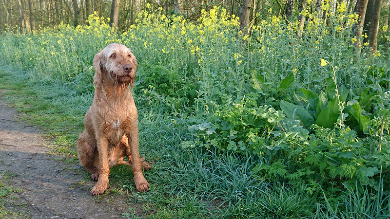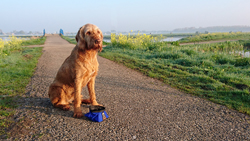 Gisteren heb ik een rondje van 134 km gefietst en dat was erg leuk. Het was prima weer zonder wind en dat maakte de trip dus een eitje. Om 7.30 precies staan woef en ik alweer klaar voor ons runnetje deze morgen. Het wordt prachtig weer vandaag en nog warm ook dus gaan we maar vroeg op pad. Ze mag ook weer lekker mee! Ik start bij de golfbaan en loop weer met haar over de dijk naar de andere kant. Even aan de riem maar dat is geen probleem. Ik doe eerst een lapje van 3.000 mtr en dat gaat prima. Ik voel niets aan mijn benen van het fietsen. Best verrassend eigenlijk maar ik doe rustig aan vandaag. Ik geef woefje wat water maar die gaat erbij zitten en vraagt aan me wat ze met dat blauwe bakje moet doen. Ze hoeft niet maar ik kan het niet riskeren haar niets te geven.