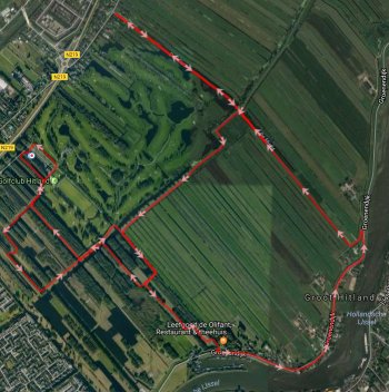 Ik pak alles dus weer in en we gaan weer verder. Ik doe nog zo’n 3.000 meter lapje en ook dat gaat prima. Ik kom net niet uit qua afstand en moet dus nog even een lusje maken in het andere deel. Daar springen twee honden op ons af. Ik heb de pest in en als de eigenaar vraagt of ik aan het trainen ben voor de marathon (heel grappig natuurlijk want die is vandaag in Rotterdam) antwoord ik dat de marathon voor mietjes is. Slaat natuurlijk helemaal nergens op maar ik heb gewoon de pest in over die honden. Daarna loop ik verder en rennen die hondjes met me mee en vallen woef lastig. Ik roep nog wat lelijks (niet nodig en dom van me) en die mensen roepen ook weer wat terug. Of ik ook even kan blijven staan omdat de honden met me mee rennen. Nee dus. Sukkels. In dit soort gevallen dus echt niet. Dan pak je de hond maar eerder vast als je al weet dat ze niet luisteren.