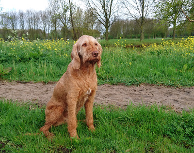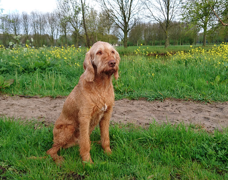 Wafje is blij en poseert even voor een mooi plaatje. Nu lekker naar de auto teruglopen zodat ze nog wat kan snuffelen. Op naar de volgende run en eerst kijken hoe ze dit kleine rondje op twee dagen achter elkaar nu doet.