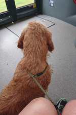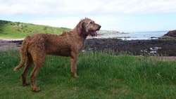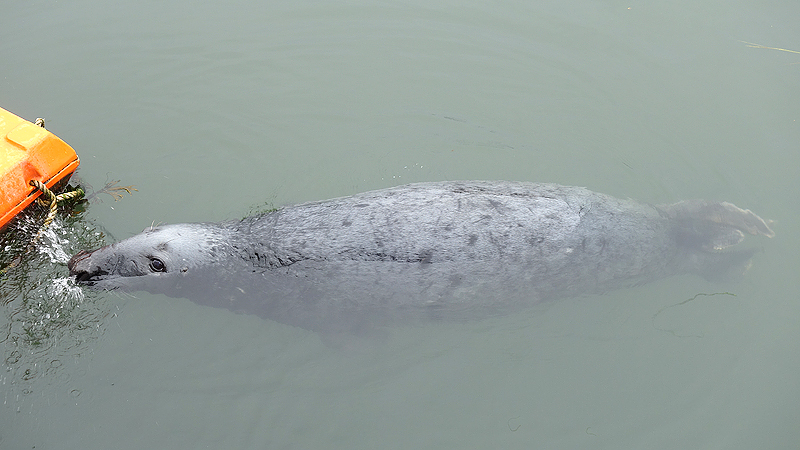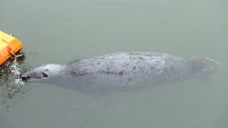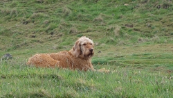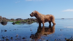 Ik neem een ijsje en raak weer aan de praat met twee mensen die wafje helemaal geweldig vinden. Later maken ze nog een foto van mij en woef en samen lopen we weer naar het strand waar woef nog eenmaal gaat badderen. Ik luister ondertussen naar de zeehonden die vanaf een rots aan het huilen zijn.