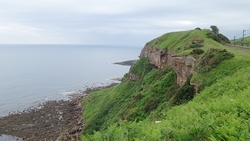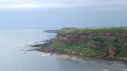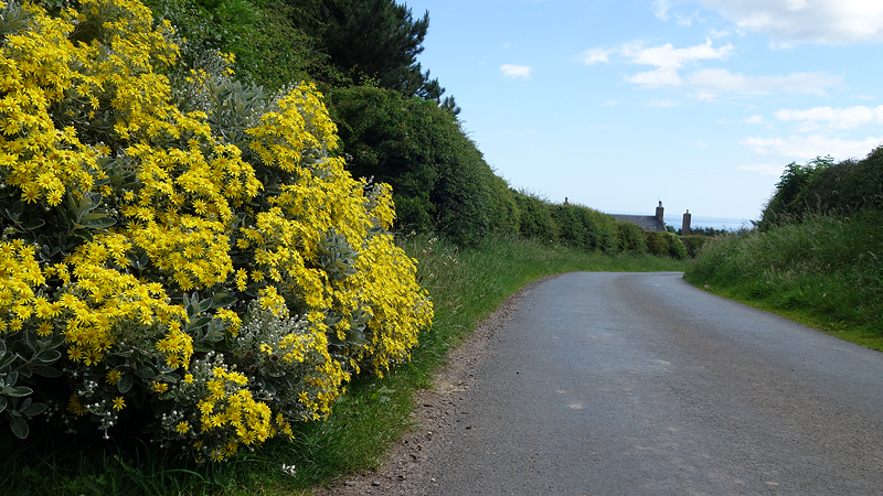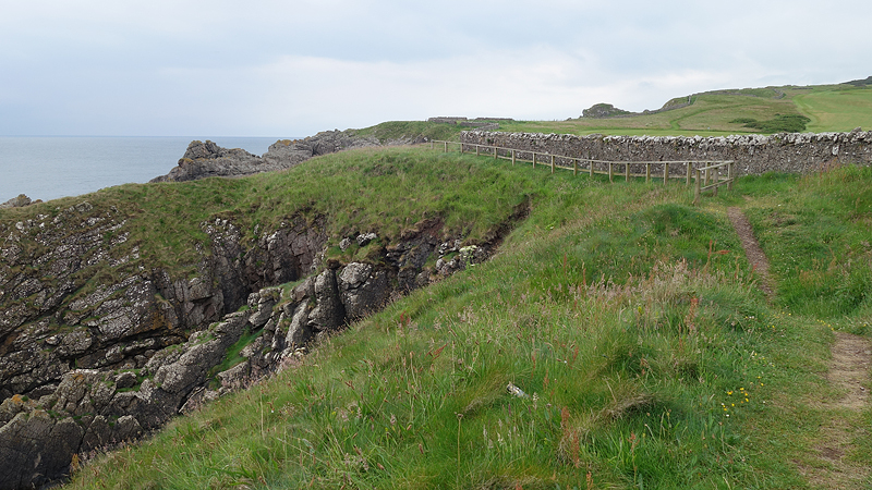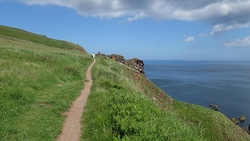 Als madam klaar is, gaan we weer verder. Nu eerst even omhoog en daarna geniet ik van het uitzicht. Prachtig! Ik praat met een echtpaar dat ook staat te genieten. Wat ik nou met die foto’s doe is de vraag. Ik vertel dat ik altijd een verslagje maak met de foto’s en dat daar uiteindelijk ook een boek van gemaakt wordt. Dat vinden ze wel leuk geloof ik. Ik neem weer afscheid. Ik zie ze later vast weer terug want zij gaan ook naar Eyemouth en ik ga straks weer terug.
