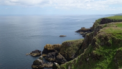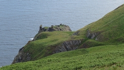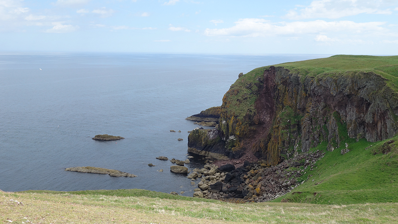 Ik merk aan de geluiden van de vogels dat we steeds dichterbij St Abbs head komen. Ik zie ook veel Gannets voorbij vliegen. Mooie grote witte vogels die in kleine groepen voorbij vliegen. Op de rotsen hoor ik Puffins en Guillemots schreeuwen.