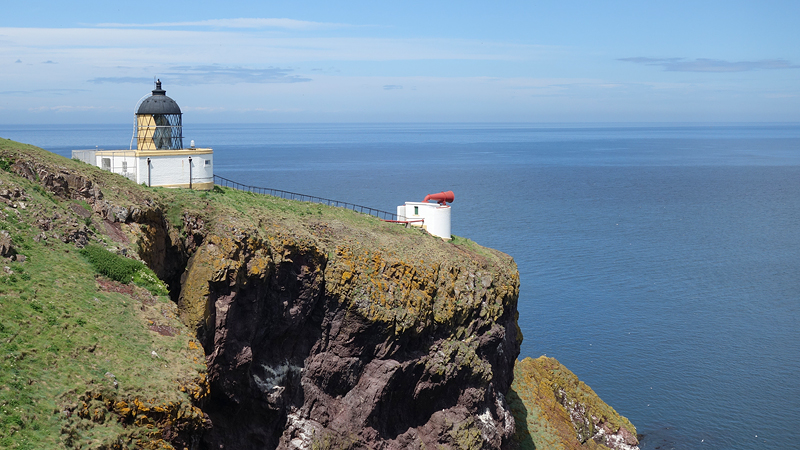 En dan is daar ineens de vuurtoren al. Het is een gek ding, want het is maar 8 meter hoog maar staat totaal op 68 meter hoogte boven de zee.