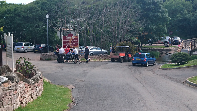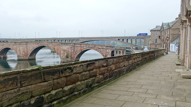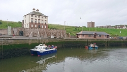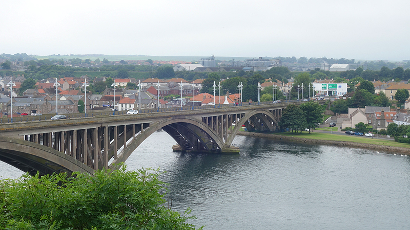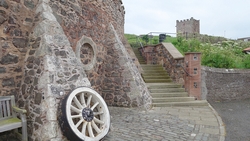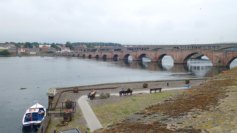 Even na 11 uur lopen we het centrum binnen. Ik realiseer me nu dat ik de duitse man van het schip dus niet om 11 uur zag maar om 10 uur. Op zijn horloge stond 11 uur maar dat stond natuurlijk nog een uur later. Misschien haalt hij het toch nog. Op het pad naar de caravan site lopen veel honden. Ze zijn allemaal lief en wat ben ik blij dat wafje niet meer loops is. Geen enkele hond heeft belangstelling voor haar. Mensen hebben wel belangstelling voor haar en ik moet diverse keren stoppen en vertellen wat voor hond dit nou is. Ze ziet er ondertussen uit als een Russische Ovcharka met dat wilde natte haar! Bij het caravan park laat ik het flesje voor woef bijvullen door mensen die uitzicht hebben over het cruise schip. Ik kan ze vertellen waar het vandaan komt en dat rond 14 uur de boot weer vertrekt. Later zocht ik op welke boot het was. Van Hapag en de route ging van Portugal naar de UK en Schotland en daarna weer naar Hamburg. Vandaag zijn ze om 7 uur aangekomen en om 14 uur moet iedereen dus weer terug zijn. In de itinerary staat dat je naar Alnwick castle kunt gaan of kunt wandelen in St Abbs Head reserve. Hoe je daar dan moet komen is mij dus een raadsel. Het klinkt allemaal leuk, maar volgens mij is de werkelijkheid toch iets anders met zo’n cruise.
