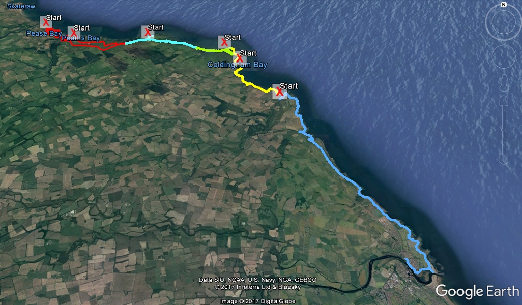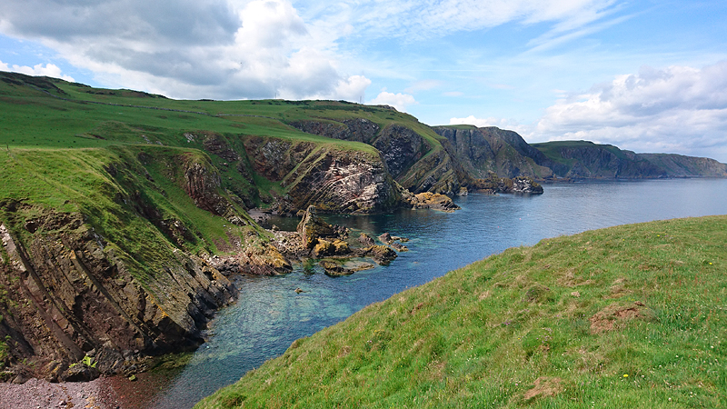Ik besloot de Coastal Route dus wel te gaan doen maar in stukjes opgedeeld. Als eerste etappe van de coastal route koos ik voor het stukje st abbs naar Eyemouth en terug. Dat zou mooi moeten zijn en al zwaar genoeg denk ik met de hoogteverschillen. De hele route loopt overigens vanaf de Cove tot Berwick upon Tweed. Dat is niet ver, namelijk 50 km en vandaar dat ik dacht die in 2 dagen te doen met bepakking en wild campen onderweg. Nu dus in stukken en aangezien ik dan delen heen en weer loop (zoals vandaag) is het bijna tweemaal zo ver.
