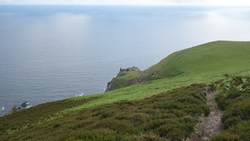 Daarna moeten we weer verder en het is nogal een klimmetje naar de vuurtoren. Gelukkig is het een prima pad waar ik stukken gewoon kan joggen. Dat is prettig want zo gaat het wat sneller. De terugweg is natuurlijk een eitje straks op dit stukje! De uitzichten zijn magnifiek.