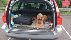Ja: dit was een top middag en gelukkig kon het ook prima met woefje zo met al die beekjes en strandjes. Ze lijkt niet echt moe maar ik til haar wel de auto in omdat ze even aarzelt met erin springen. Dat snap ik volkomen dus help ik haar even.