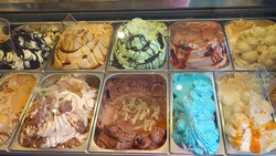 Ik kom uiteindelijk beneden bij het strand in het dorpje uit. Waf rent meteen naar de waterkant en gaat weer badderen natuurlijk. Ik wacht even af en daarna loop ik met haar naar een ijs stalletje.