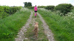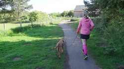 Na een poosje gaan we weer op pad. We praten een beetje over woefje. Ze wordt duidelijk ouder en heeft blijkbaar meer tijd nodig voor herstel van activiteiten. We denken niet dat ze ergens pijn heeft of ongelukkig is. Inmiddels loopt ze ook weer vrolijk me en soms ook voor ons uit. Lastig in te schatten allemaal wat er nou is en of er wat is.