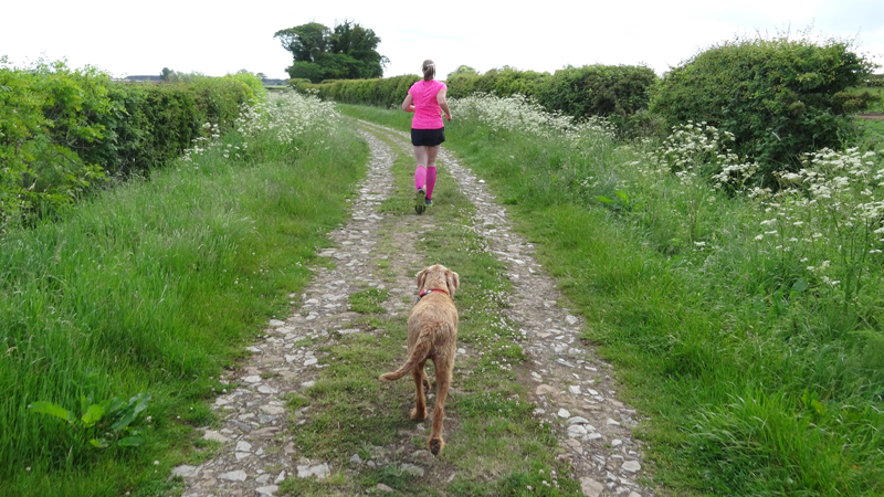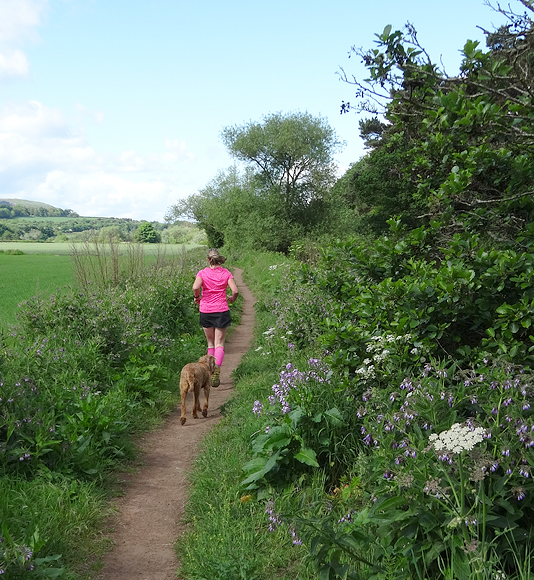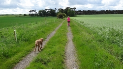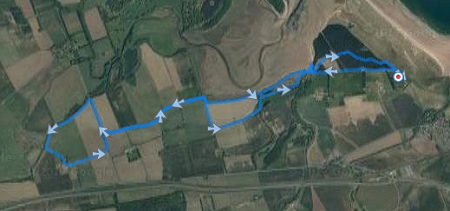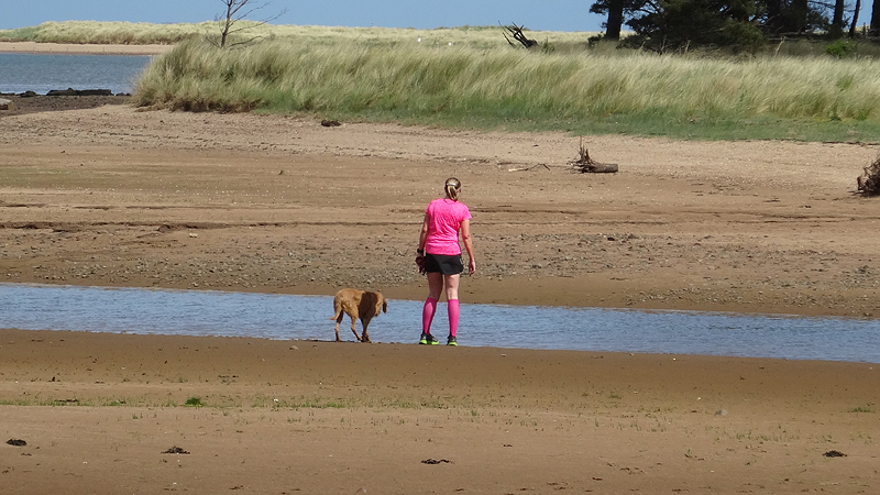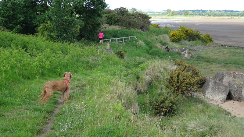 We besluiten te starten bij de parkeerplaats van het country park en vertrekken vanaf daar voor de run. Dat scheelt net het lusje vanaf Dunbar waar we wellicht weer veel honden tegen zullen komen en geen ander pad kunnen kiezen. Het is vreemd weer. Eigenlijk best fris bij de start maar ook wel aangenaam. Ik ga snel nog even naar het toilet voor vertrek en dan kunnen we.