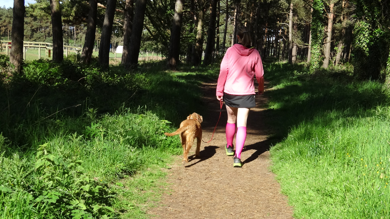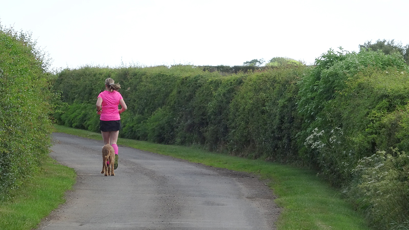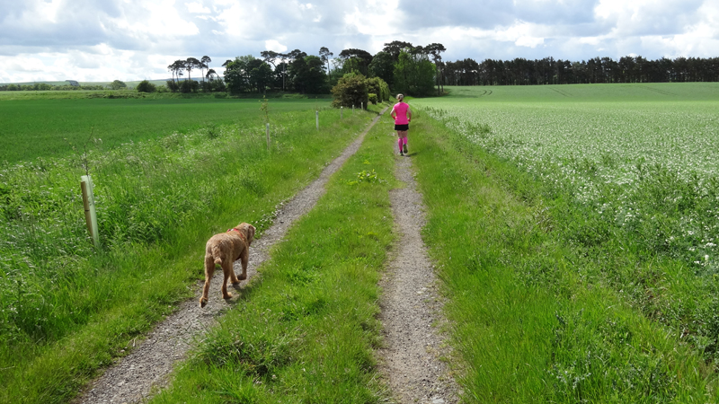 Gisteren heb ik niet meer gelopen. We zijn naar Isle of May geweest en waren veel later terug dan gepland. Toen we eindelijk om 8 uur thuis waren, hadden we trek en daarna zijn we lui geweest. Maar vandaag gaan we meteen in de ochtend op pad voor een rondje met woefje. We nemen aan dat ze wel weer zin heeft ook al is ze hartstikke moe van de fiets tocht. Ze slaapt natuurlijk niets gedurende twee dagen en loopt relatief ook vaak stukken mee. Maar we gokken dat ze wel lekker mee wil.