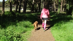 Eest even de warming up en ik houd mijn jackje maar even aan. We lopen via het dierenparkje naar het water. Inmiddels gaat het zonnetje ook alweer schijnen en ik trek gauw mijn jackje weer uit. Wafje heeft niet veel zin en blijft steeds achter. Is ze te moe? Voelt ze zich niet goed? Terwijl ik langs het water loop, bedenk ik dat we beter terug kunnen keren aan het einde van het water. We lopen hier vooral voor haar dus als ze zich niet goed voelt, is het natuurlijk niks zo.