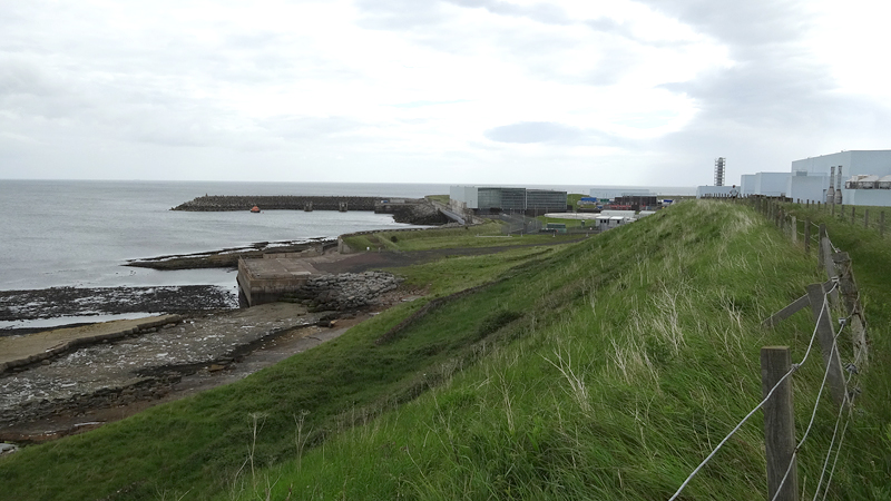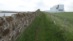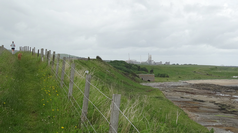 Na het light house lopen we door. Over het graspad naar de limekilns even verderop en daarna over een stukje weiland naar het power station. Daar kunnen we over een verhard pad langs het water lopen. Aan het einde keren we weer om. Ik liep al eens verder maar dat doen we vandaag niet. S. vertrekt vandaag weer naar Nederland en we willen nog wat doen en ook nog wat eten.