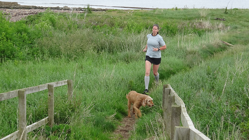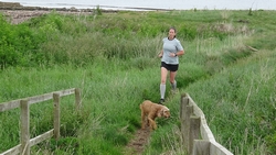De terugweg is iets korter omdat we net een ander lusje lopen. Het gaat eigenlijk heel snel op deze route omdat je steeds naar een ander punt lijkt te lopen. Het light house, het strandje, de limekilns, het power station, het pad en dan weer terug. Na ruim 13 km staan we weer bij de auto en alles liep gemakkelijk en woefje vond het deze keer ook echt allemaal leuk en liep lekker mee. Wat dat dan is op een run waar ze niet mee wil, weet ik nog steeds niet. Heeft ze dan pijn? Is ze niet lekker? Zoals vandaag is alles duidelijk weer helemaal in orde gelukkig. Afwachten maar hoe mijn oude besje het doet. Eerst een rustdagje voor haar en overmorgen maar weer eens kijken.