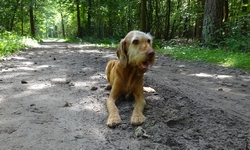 Vandaag gaan we weer naar het huis kijken waar we misschien heen willen verhuizen. Ik ga eerder weg zodat ik met woef een rondje kan lopen in het nabij gelegen bos en een beetje de omgeving kan verkennen. In april liepen we hier ook al een rondje. Ik had aanvankelijk een rondje door onbekend gebied gemaakt van natuurmonumenten maar het is erg warm en aangezien die route meer in open terrein loopt, leek het me beter om door het bos te gaan. Kan ik meteen eens kijken hoe ver ik kom met dat bos aan de overkant van het huis. Woef vindt het meteen al leuk.