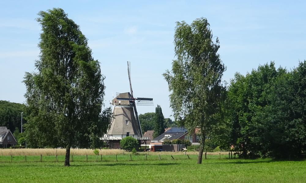 Omdat ik een beetje kris kras aan het dolen ben door het bos, besluit ik uiteindelijk toch over het spoor en de weg te gaan om even een stukje afstand te kunnen maken. Ik heb nog tijd en er zit pas 5 kilometer op de teller ofzoiets. Ik loop dus even over een hele rustige weg (schaduw), langs de molen van Hulshorst en daarna terug naar de spoorwegovergang.