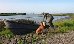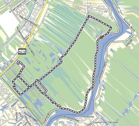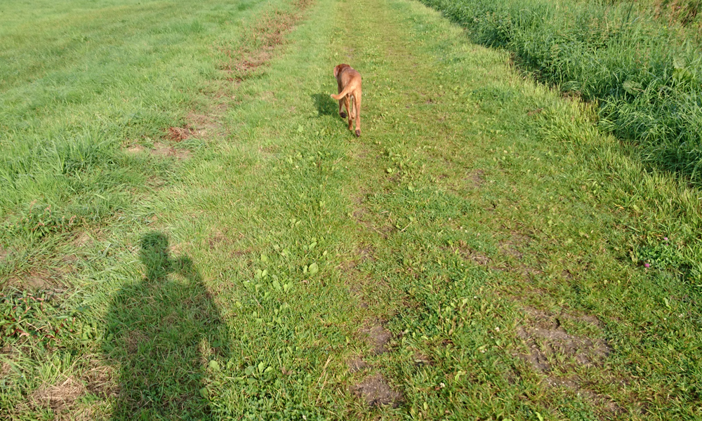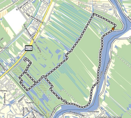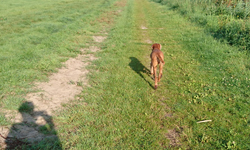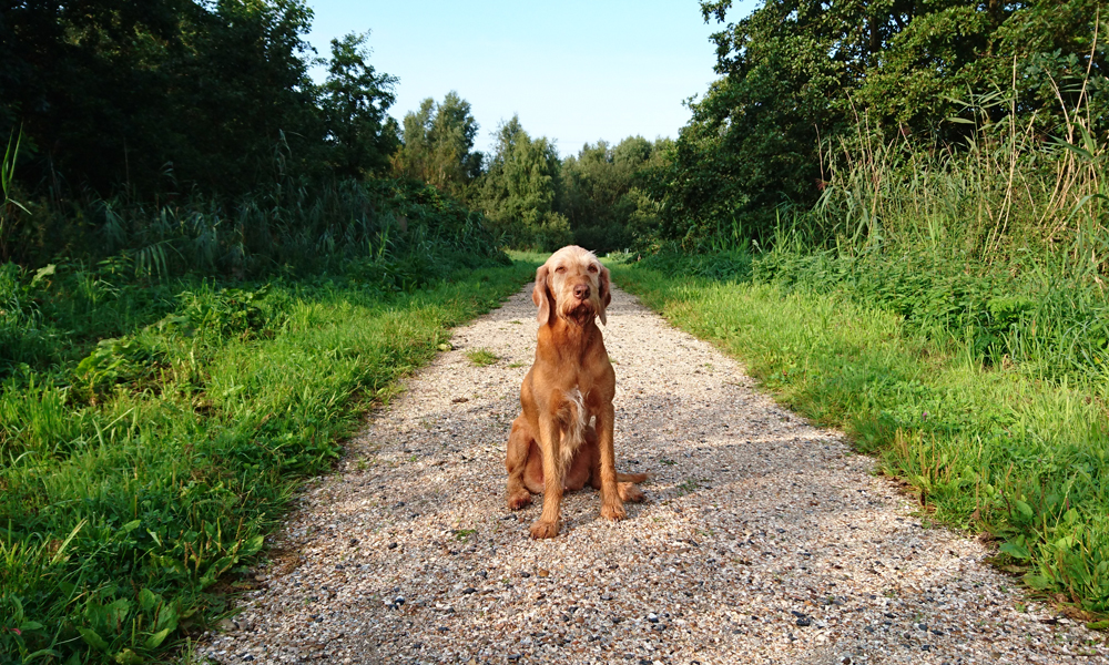Vandaag regent het weer vrij fors door maar ik ga toch gewoon op pad met wafje. Mijn petje heb ik nog steeds niet gevonden maar mijn witte Nike petje gaat ook prima zo in de regen. Terwijl ik naar Hitland rijd, ontdek ik dat ik de lijst roerende zaken niet goed heb ingevuld. Dat blijft dus even door mijn hoofd spoken maar ik ga niet terug naar huis. Straks! Verder maakte ik wel thuis een lijstje met de dingen die ik nog moet en wil doen voordat we morgen vertrekken. Ik ben benieuwd of het allemaal gaat lukken. Eerst een stukje lopen nu! Omdat het hartstikke koud en nat is, doe ik maar een hele korte warming up en begin ik al vrij snel met mijn run. Rustig aan beginnen dan maar totdat ik warmer ben en dat gaat goed. Ik hobbel rustig met woefje richting de dijk. Daar lijn ik haar aan en ga verder over de dijk en weer terug het natuurgebied in na 5 kilometer. Omdat het zo nat is, ga ik niet off road maar neem het pad. Het lopen gaat verder prima en ik heb geen last van de regen. Eigenlijk wel lekker zo en beter dan het warmere klamme weer! Waf vindt het ook allemaal prima zo.