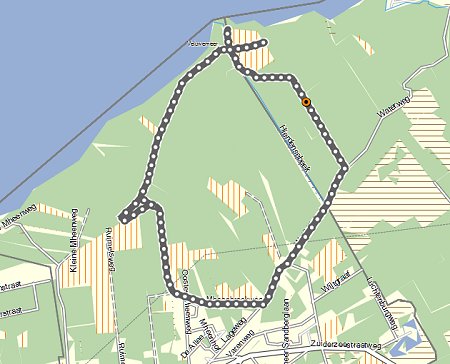 Daarna lopen we nog een stukje verder maar hoewel het pad op de kaart wel verder loopt, stuiten we op een hek en keren we dus maar weer om. Ze gaat nu weer de beek in als we erlangs lopen maar aan de andere kant en dat is net iets makkelijker gelukkig. Madam is weer lekker afgekoeld gelukkig. We slaan linksaf bij de vogelkijkhut en lopen richting het fietspad waar we weer rechtsaf slaan. Ik kijk geregeld even op de kaart zodat ik weet waar ik ben en waar ik eventueel een volgende keer nog heen kan gaan. Voor het gemak en omwille van de tijd neem ik het fietspad en de rustige weg terug naar de auto. Dat loopt verder ook prima en al snel zie ik de auto alweer staan. S. is inmiddels bijna bij de ijssalon (die in mei 2017 geopend werd en het ijs van de ijssalon uit Garderen aanbiedt!) dus maak ik haast met mijn extra verkenningslusje. Ik geef woefje wat eten en rijd daarna naar de ijssalon.