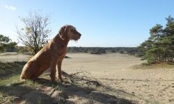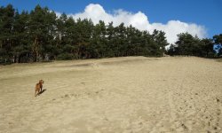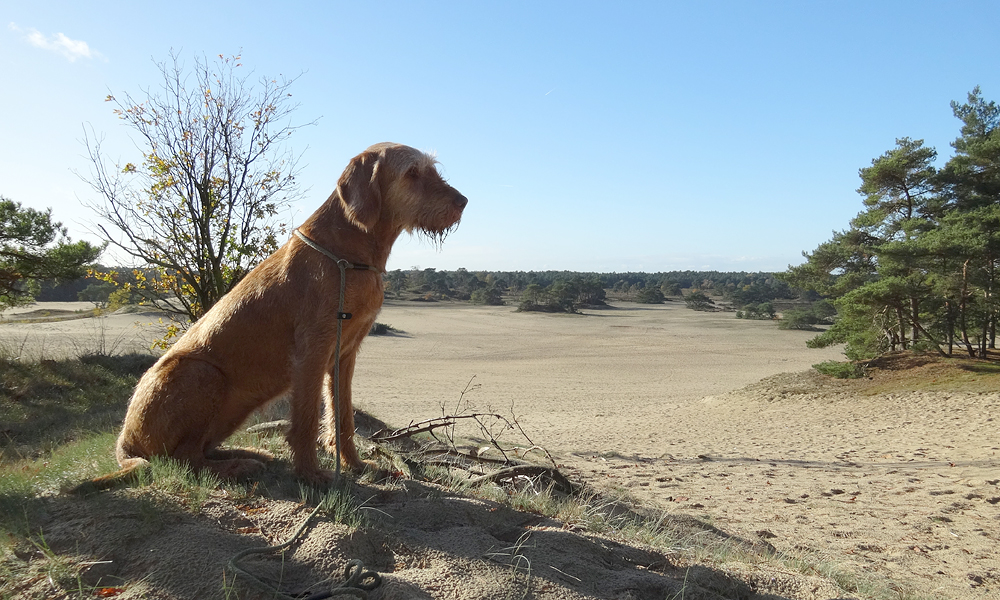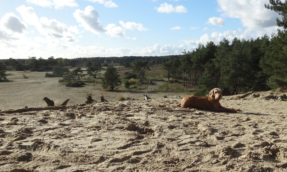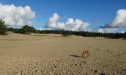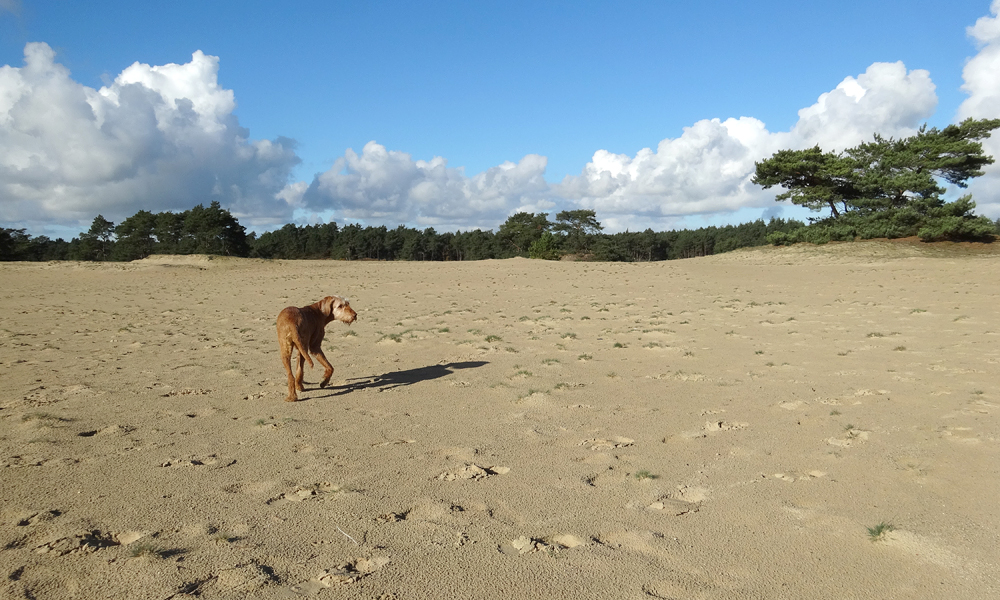 Woef en ik hobbelen weer door en genieten van de omgeving. Het is echt prachtig hier maar het zand loopt niet echt makkelijk. Woefje vindt die grote zandbak wel leuk geloof ik!