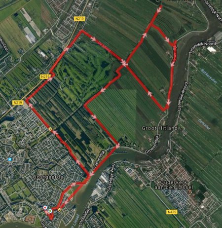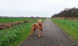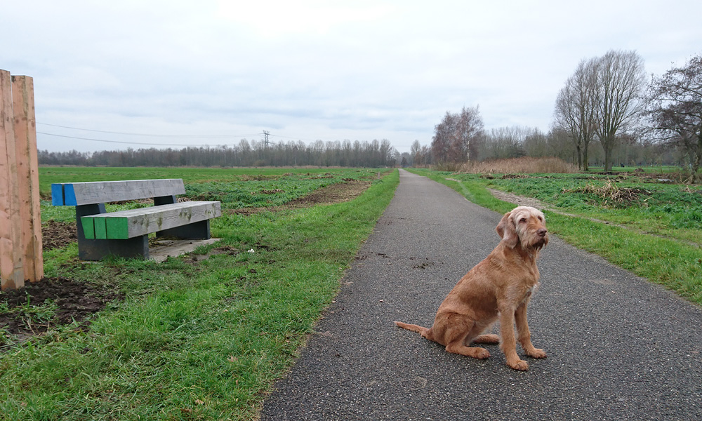 Na ons praatje loop ik gauw verder en loop het bekende rondje met woefje. Omdat het overal zo nat en vies is, loop ik over de dijk terug naar huis en loop niet meer het natuurgebied in. Na ruim 13 km staan we weer voor de deur. Nu gauw inpakken!