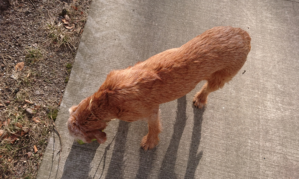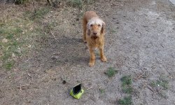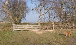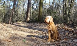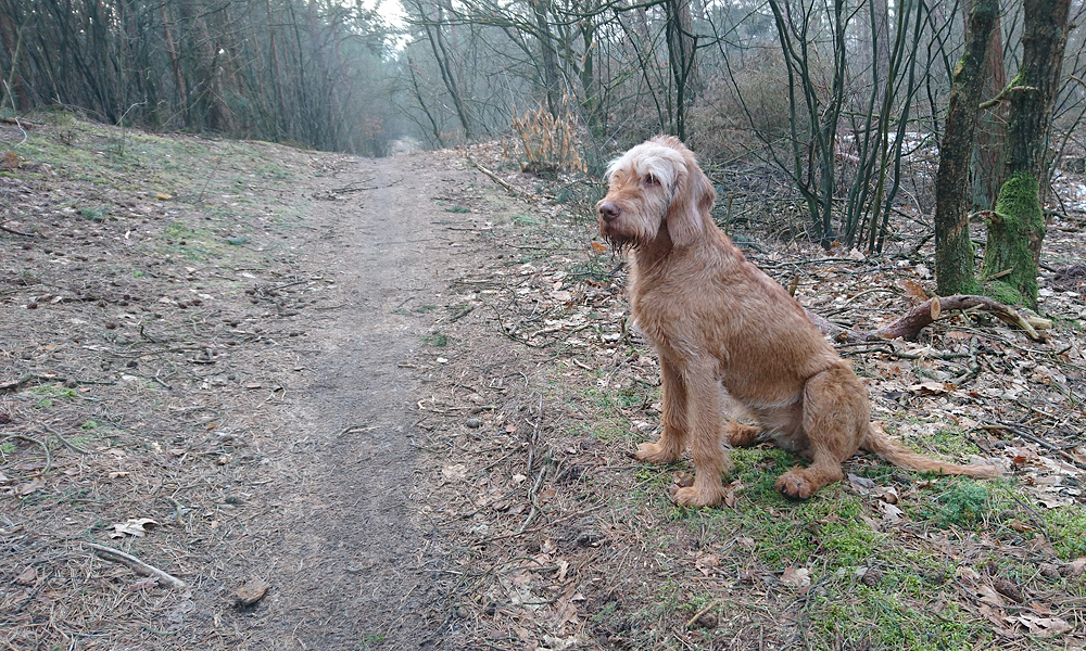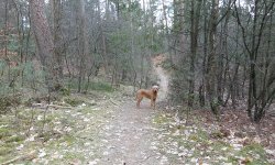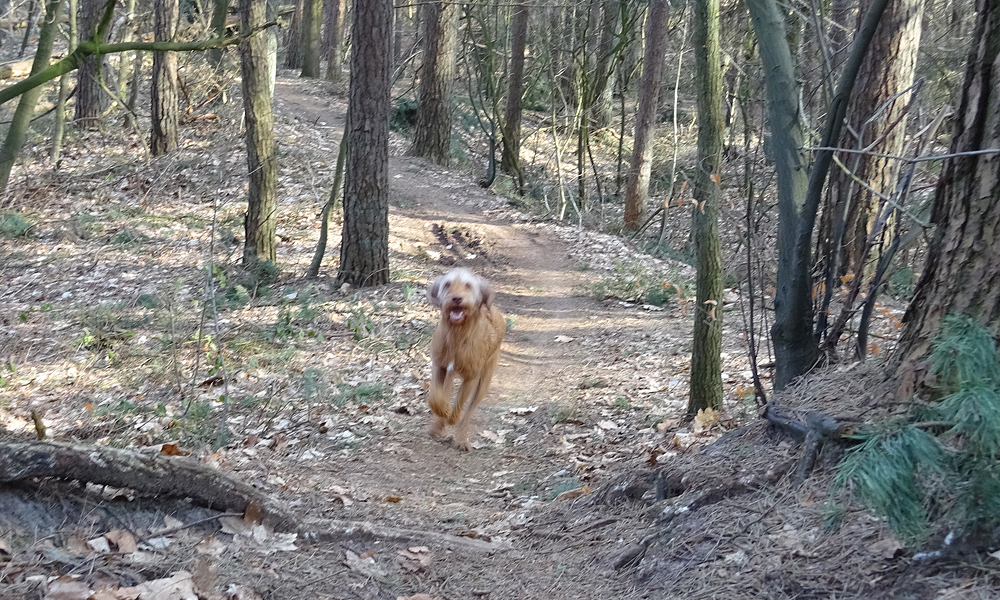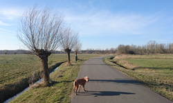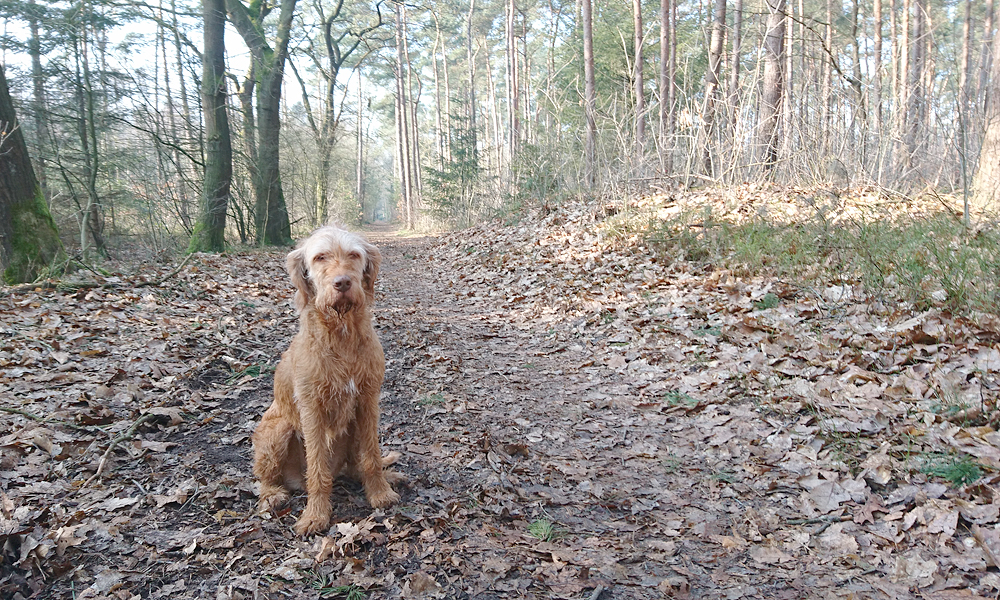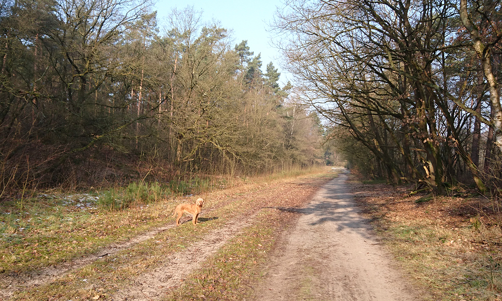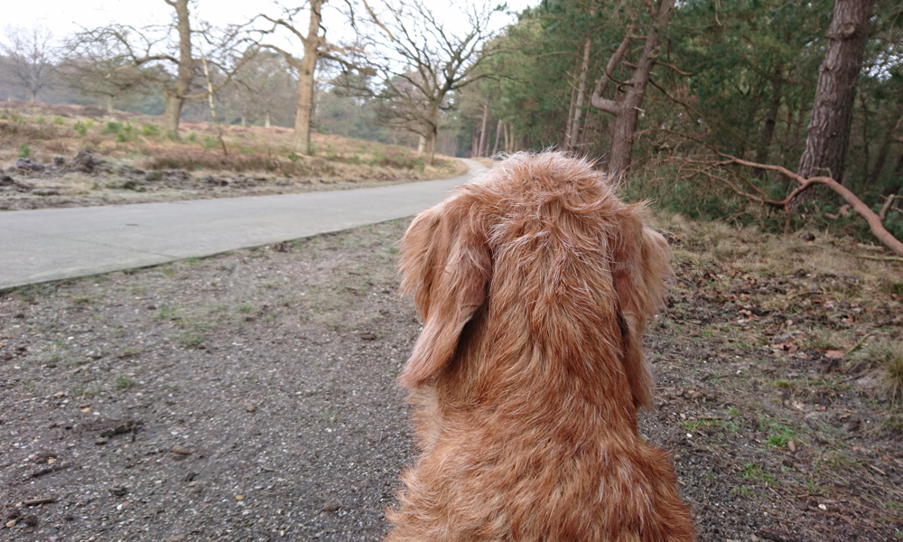 Gisteren heb ik maar een kort rondje gelopen en vandaag gaan woefje en ik weer op pad. Omdat ik niet wil dat ze gaat drinken en badderen in de Zandenplas waar ik heen wil lopen, neem ik voor het eerst in eeuwen weer mijn rugzak mee om woefje water te kunnen geven. Helaas ontdek ik dat een van de klemmetjes kapot is en moet ik iets anders bedenken om toch de oude rugzak mee te kunnen nemen. Ik ben dus extreem traag op gang maar uiteindelijk vertrekken we dan toch eindelijk voor ons rondje. Ik wil naar de Zandenplas lopen en daarna weer terug via het Zandenbos. Zo gezegd zo gedaan en al snel zijn we op pad.