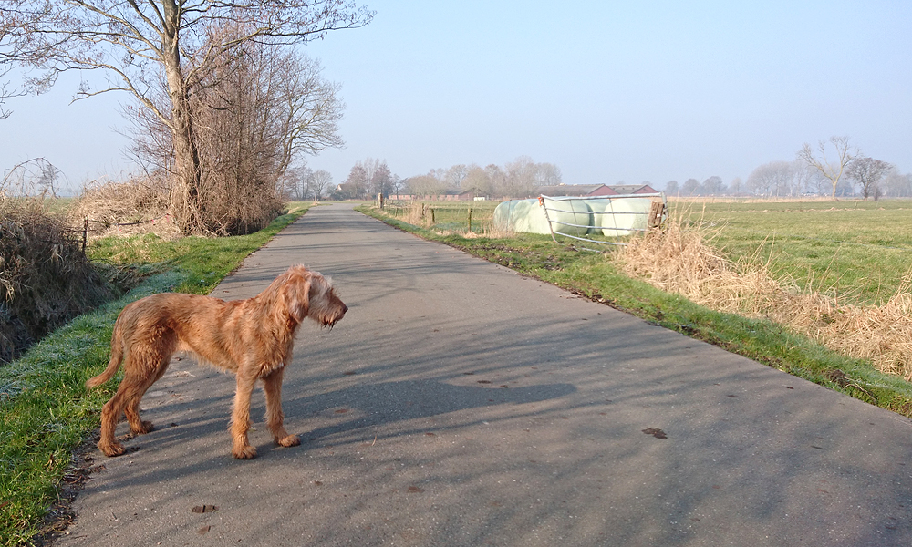 Ik neem afscheid van de vrouw met haar hond en loop weer verder. Ik weet ongeveer waar ik heen moet maar ik heb de kaart wel vaak nodig. Ik ben echt al lang onderweg en zo ver hebben we nog niet gelopen…..