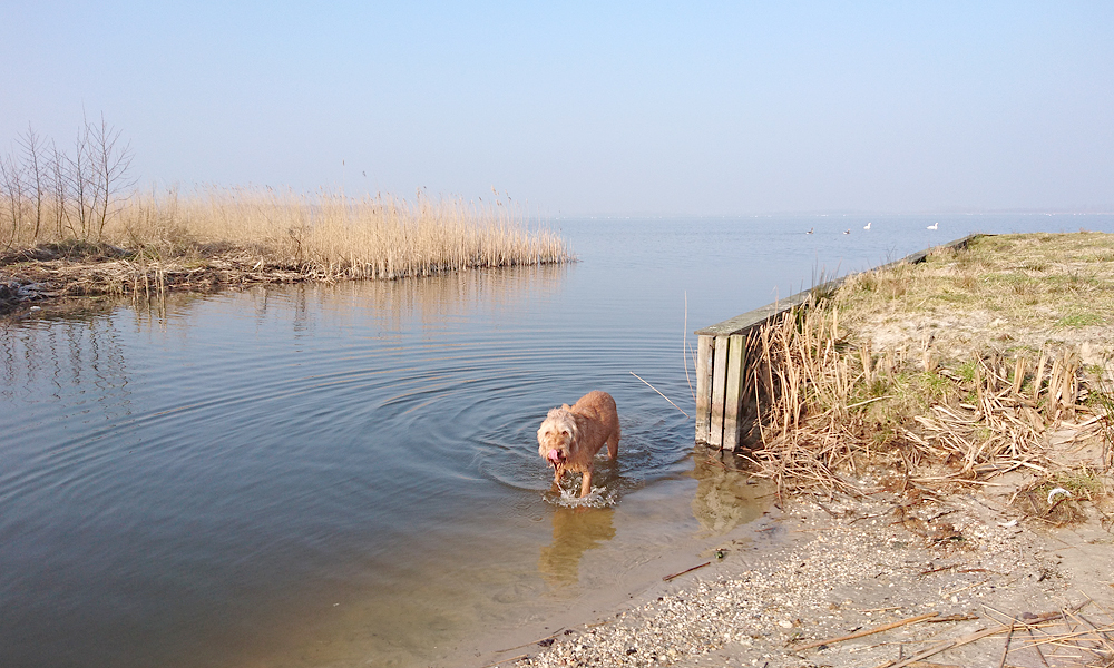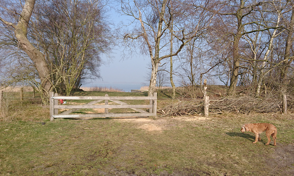 Ik geniet met volle teugen en het is hier echt mooi. Woefje mag hier loslopen en dat is natuurlijk helemaal prettig. Ze geniet met volle teugen en loopt ver voor me uit. Ze is zo fit als een hoentje gelukkig. Ik ben ook blij dat ze inmiddels een slokje heeft gedronken. Ik maak ergens nog even een kiekje van mij en woef omdat ik nu mijn gewone camera ook bij me heb.