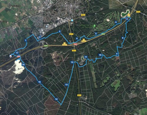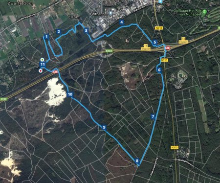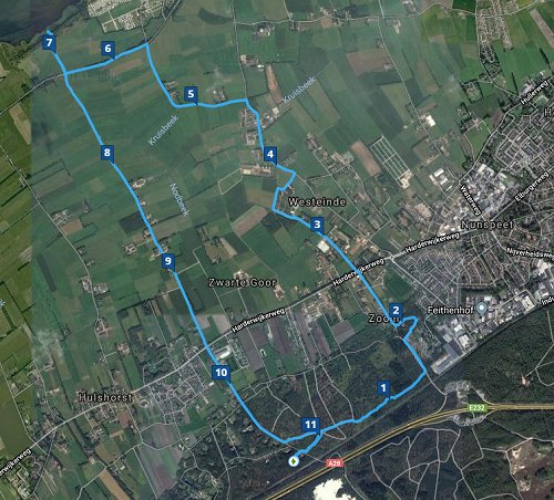 Inmiddels ben ik de vrouw weer tegengekomen die haar hond uitliet en we kijken samen nog eens op de kaart. Ik pak de tweet erbij waar de locatie bij staat en dan weet ze ineens wat ik bedoel. Dat is verder weg, bij Vierhouten! Ze legt uit waar ik heen zou moeten en ik besluit dat de volgende run daar maar geen zal moeten gaan dan. Ik ben benieuwd want dat is ook prachtig denk ik. Voor nu is het te ver weg.