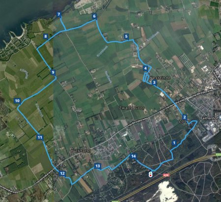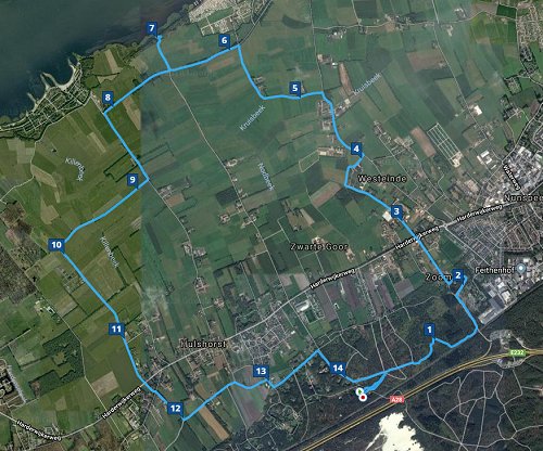 Na een kleine 18 km staan we weer voor de deur. Ik ga gauw de vogels bijvoeren en naar de vijver kijken. Daarna ga ik wafje verzorgen en lekker warm maken/houden. Ze vond het volgens mij weer helemaal leuk en kijkt nog steeds blij. Op naar de volgende ronde. Het was leuk om weer nieuwe routes te ontdekken.