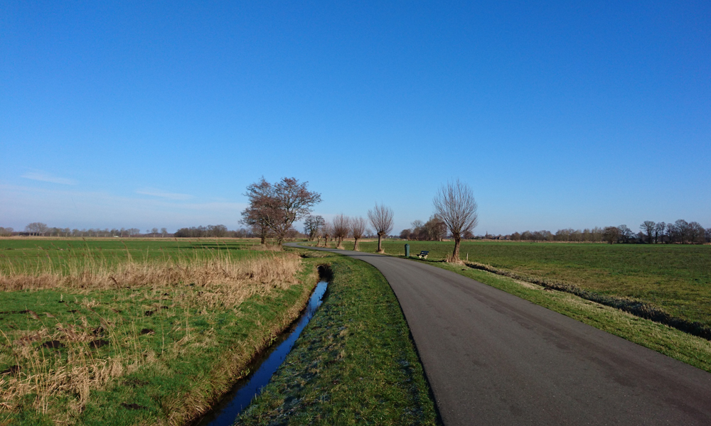 Als ik even heb staan kijken, loop ik weer terug naar de weg. Vanaf nu alleen maar rechtdoor. Links van me zitten wilde zwanen in het veld tussen de gewone knobbelzwanen. Met mijn telefoon kan ik dat dus niet fotograferen jammer genoeg maar het verschil is heel duidelijk te zien aan de kleur van de snavels en het formaat van de dieren. Echt gaaf. Ik vind dit een heerlijk rondje zo.