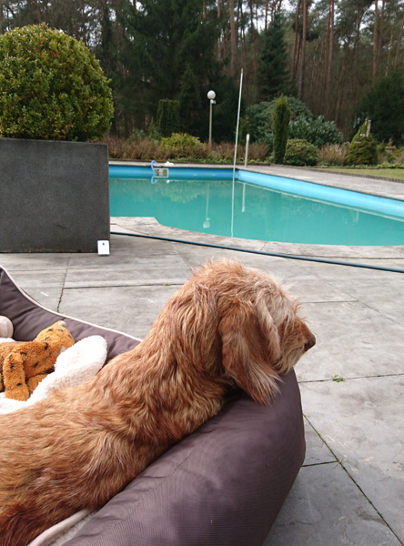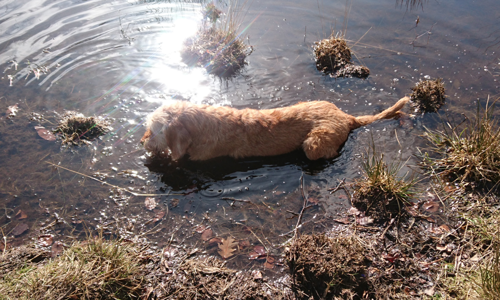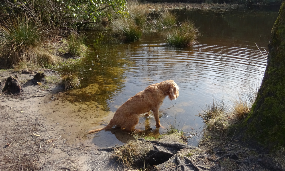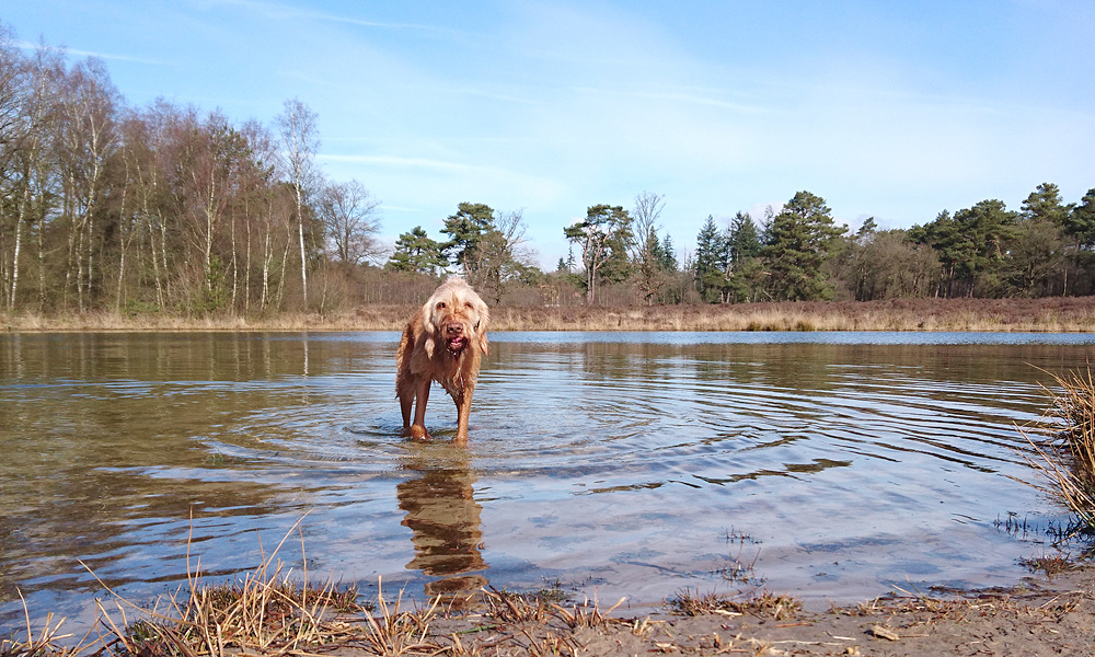 Bij de Waskolk aangekomen was het nog steeds stralend weer en woefje ging lekker badderen en wat drinken.