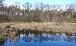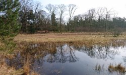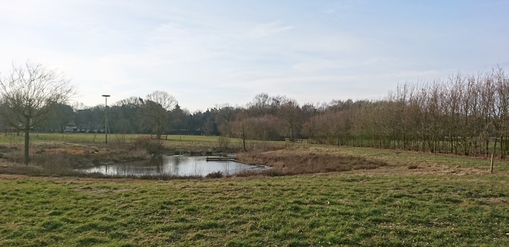 De route zal aan het einde weer langs de vennetjes van het ronde huis lopen. Ik was niet van plan daar nu per se langs te lopen maar nu ik toch deze route loop is het ook prima. Het is mooi om te zien en woefje maakt weer dankbaar gebruik van het watertje om even haar buikje te koelen. Het is nog steeds mooi weer hoewel er inmiddels wel wat schapenwolkjes binnen komen drijven. Maar de temperatuur is goed, er is geen wind en het ziet er allemaal heel vriendelijk en lente achtig uit. Gisteren en eergisteren was het helemaal heerlijk zonnig weer en hebben we ook nog buiten gezeten.