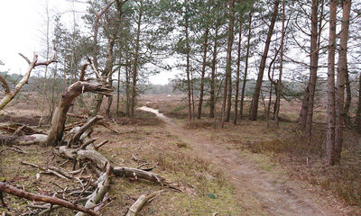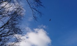 Deze route is overigens ook erg fraai en loopt eerst door een wat meer open deel heen en daarna weer door het bos. Ik zie tijdens het lopen twee grote roofvogels boven me cirkelen. Op zoek naar een nestplaats wellicht?