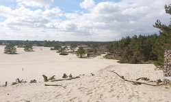 Na de vennetjes neem ik even het fietspad en al snel komen we weer bij de Elspeterweg die ik oversteek. Vanaf daar moet woefje een klein stukje aan de riem maar dat is hier geen probleem. We lopen over het zachte zand waarbij het me opvalt dat de Mafate veel beter presteert op dit zachte zand dan de Bondi. Opvallend want ik kan redelijk gemakkelijk over het zand naar het hardere pad hobbelen nu. Het is echt prachtig en ik maak nog even een kiekje. Stom genoeg loop ik weer ergens een verkeerd lusje waardoor het toch aan het einde van het pad richting de zandverstuiving weer wat langer is dan nodig maar uiteindelijk staan we dan toch bij de zandverstuiving. Even kijken daar want het blijft mooi.