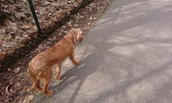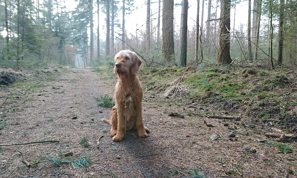 Inmiddels zit er al 17 km op de teller dus het wordt wel tijd om huiswaarts te gaan. Woefje is helemaal happy en is duidelijk niet moe. Geen idee hoe ze dat voor elkaar krijgt maar ze kijkt nog steeds vrolijk en blij. Vlakbij huis zit een Buizerd vlak voor mijn neus. Jammer dat ik geen camera bij me heb maar alleen de telefoon. In plaats van een kiekje van de Buizerd neem ik dan maar een fotootje van mijn blije woefje.