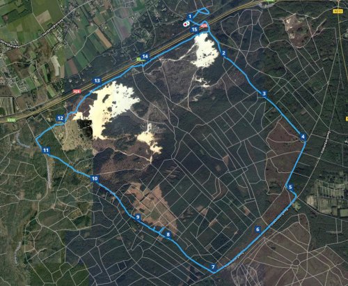 Ik loop nu richting de Klarenweg en ga natuurlijk verder langs het hek en niet via de weg. Langs het hek is veel korter en dit is wel genoeg zo. Ik ga nog even bij de zandverstuiving kijken en daarna lopen we gauw verder naar huis. Na 16 km staan we weer voor de deur. Veel langer dus dab gepland en dacht maar het ging heel makkelijk en het was een mooie route.