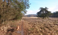 Gisteren heb ik niet meer gelopen maar vandaag ga ik op pad voor een rondje met woef. S. is thuis en hij brengt ons weer naar de start vlakbij het Zandenbos. Vorig weekend hebben we dat ook zo gedaan omdat het toen een beetje koud was om met de auto terug te rijden. Ik verkende toen het gebied daar en stuitte op het Mosterdveen. Mooie route maar vandaag ga ik veel korter lopen. Ik ga nu de route lopen die ik eigenlijk voor die dag had getekend.