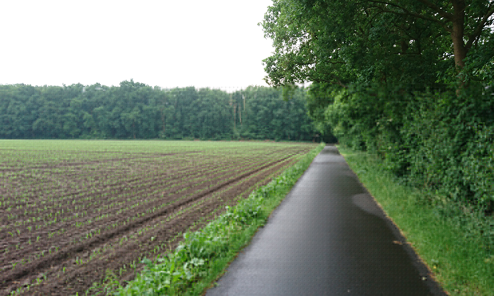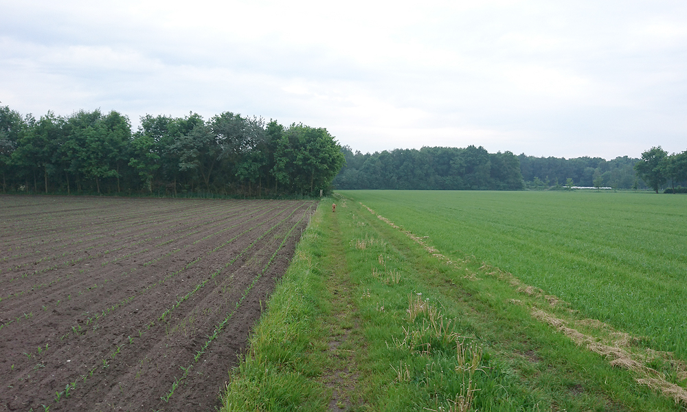 Verder en verder gaat het. Ik raak S. weer even kwijt als we binnendoor moeten lopen. Met 15 km zal ik langs de racecourse gaan en vanaf daar is het nog een stukje saai heen en weer lopen. Vlak voor de racecourse zie ik hem staan en ik gebaar dat ik graag de spons zou willen hebben. Hij springt op zijn fietsje om een stukje verder uit te komen zodat hij tijd heeft om alles te pakken. Ik ben blij met de spons en geef meteen mijn bril ook aan hem. Die heb ik toch niet op en als er niks op mijn hoofd zit, is dat ook lekkerder. Ik loop nog steeds. Het wordt wel al afzien en dat komt natuurlijk gewoon door het simpele feit dat ik al een jaar niet meer deze afstand loop en al helemaal niet over de weg of aan een stuk. Toevallig dat ik dit jaar nog een keer 10 km continu liep als MAF test (langzaam dus) en een keer een 8 km stuk. En dat is het. Nu loop ik al 15 km achter elkaar te hobbelen op een tempo dat veel hoger ligt natuurlijk dan mijn heerlijke getrut op de offroad stukken met woefje. Maar ik hou vol. Ik denk nog steeds aan het hert.