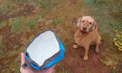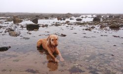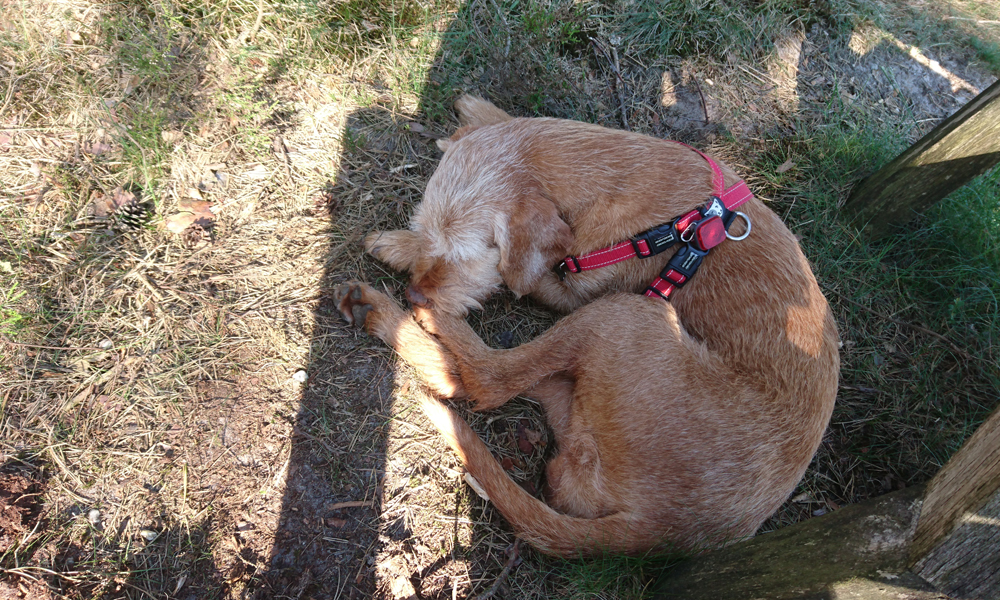 Vanmiddag lekker lunchen! Thuis is er nog tijd voor een kort bad en daarna gaan we weer op pad. Woef was al op pad met de eigenaar van het huisje en wij laten haar ook nog even uit. Vanmiddag wandelen bij de vuurtoren.
