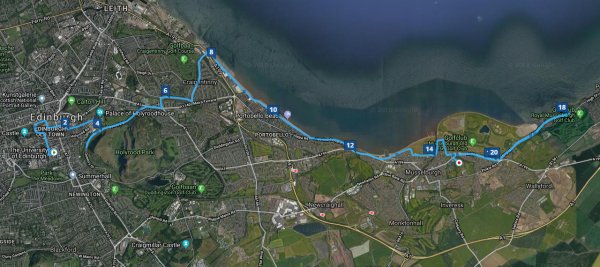 Hartslag gaat volgens mij ook wel goed al ben ik even gaan vertragen vlak voor Musselburgh toen ik me afvroeg of het wel goed ging. Ik voelde toen was maar dat was ook zo voorbij. Vervelend dat ik er altijd op moet letten maar zo be it.