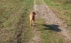 Verder gebeurt er niks spannends eigenlijk. Ik kom iemand tegen waarmee ik een tijdje geleden heb staan praten over haar Herders en hun dierenarts. Helaas is een van de honden toch overleden en heeft ze er nu nog maar eentje. Verdrietig en het doet me weer beseffen hoe blij ik ben dat woef weer is opgeknapt. Na ruim 9 km staan we voor de deur. Weer een kilometertje erbij voor woefje.