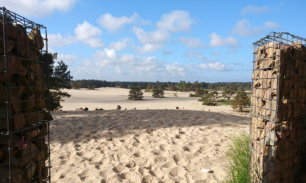 Het lopen gaat vandaag prima. Wafje loopt ver voor me uit en is zo fit als een hoentje. Ik ben er echt blij mee. Het rondje door het Willemsbos gaat prima. Ook nu vandaag gebeurt er weer niks bijzonders en kom ik gelukkig niemand tegen. Ik ga aan het einde nog even kijken bij de zandverstuiving en maak een kiekje. Na ruim 9 km staan we weer voor de deur. Op naar de volgende run!