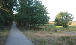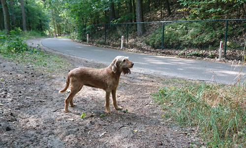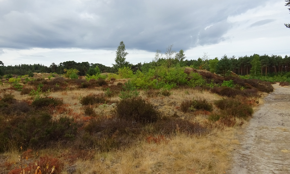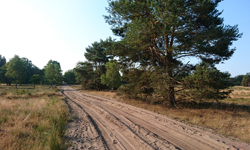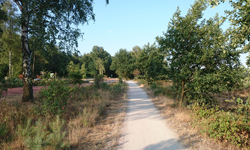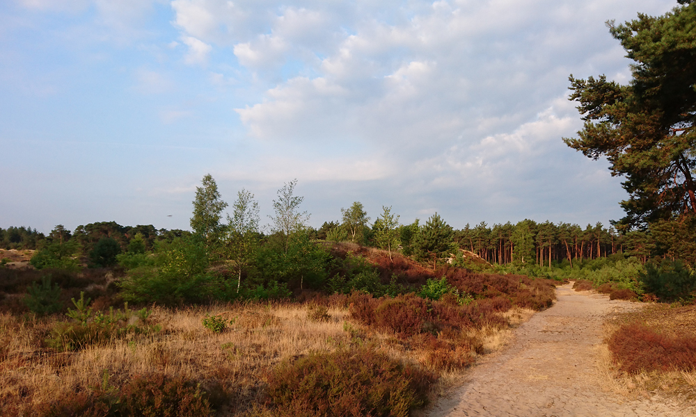 Gisteren was de kapster hier om een proef kapsel te maken voor de 23e. Langzaam komt de datum nu toch wel dichterbij ineens. Volgende week gaan we ook met de fiets op stap na de ceremonie en het foto’s maken. Ik ben benieuwd. Het is nog steeds akelig warm en we weten nog niet precies wat we nou gaan doen eigenlijk. Afwachten maar. Vandaag is het in ieder geval veel te warm om te lopen met woefje en vertrek ik dus voor een rondje in mijn uppie. Ik kies vandaag eens voor de lange route via het fietspad langs de heide en terug via de Klarenweg en het oude stationnetje. Dat is iets van 15 km denk ik (nee dus). Eerst maar eens langs de zandverstuiving en aan het eind van het fietspad rechtsaf. De eerste 3.5 km zit er dan alweer op.
