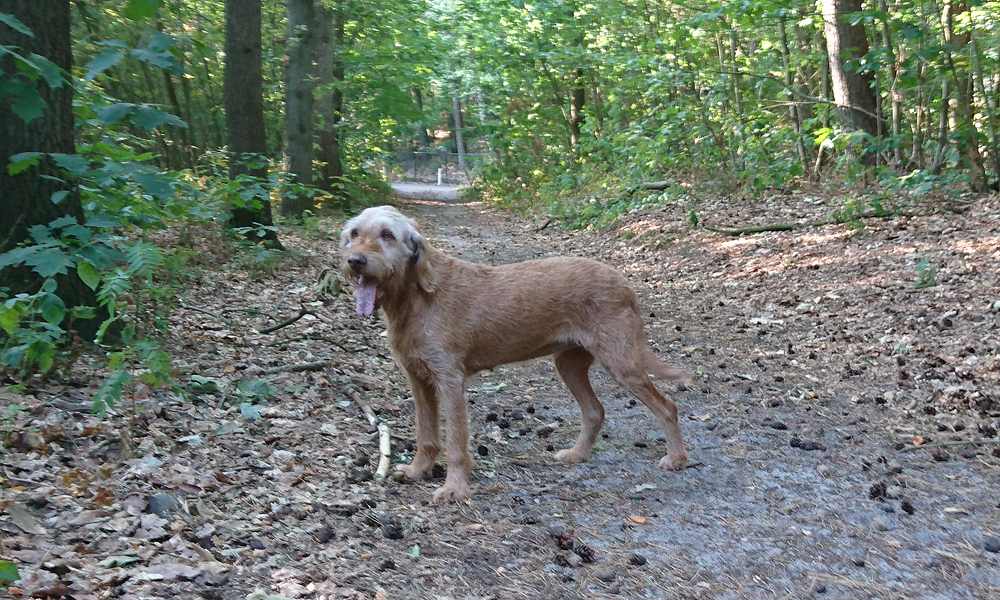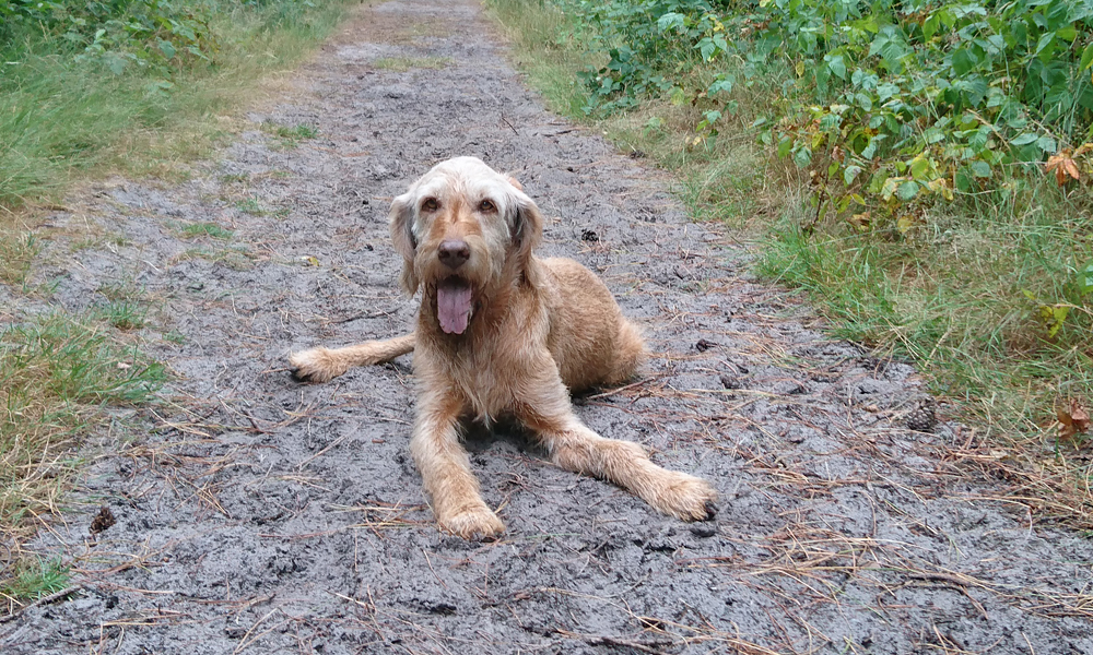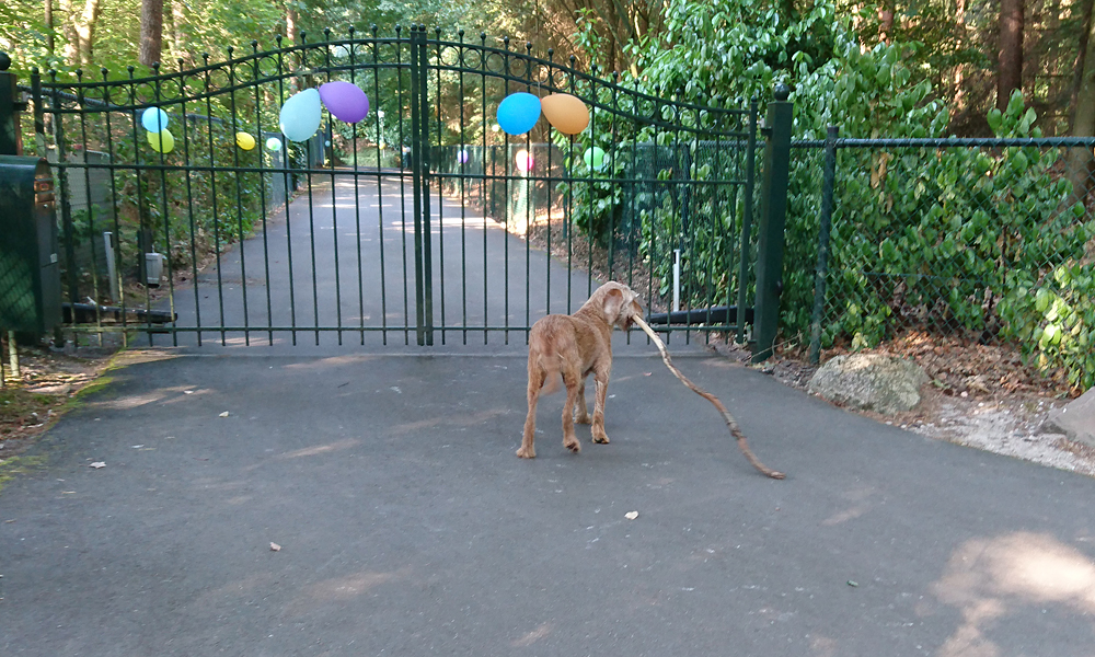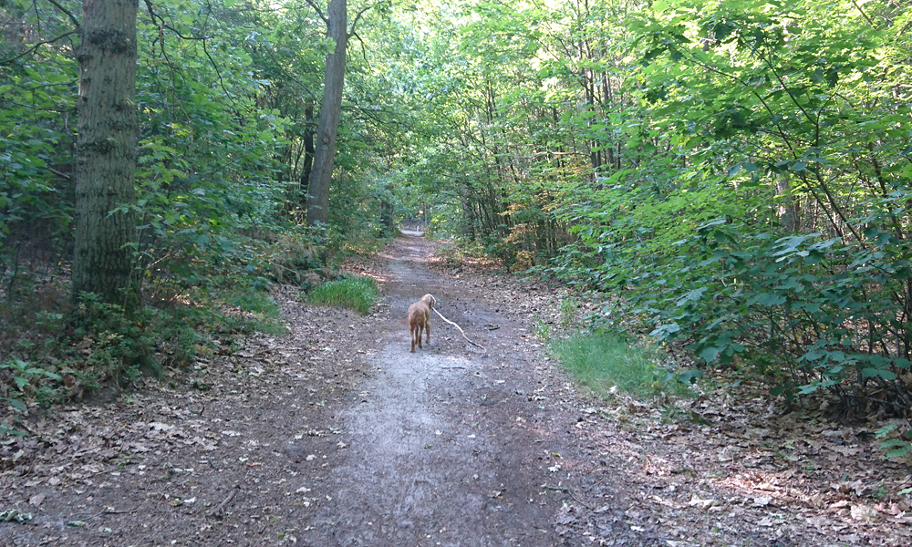 Thuis haal ik woefje nog even op voor een wandelrondje. Dat vindt ze dan wel weer leuk gelukkig.