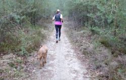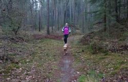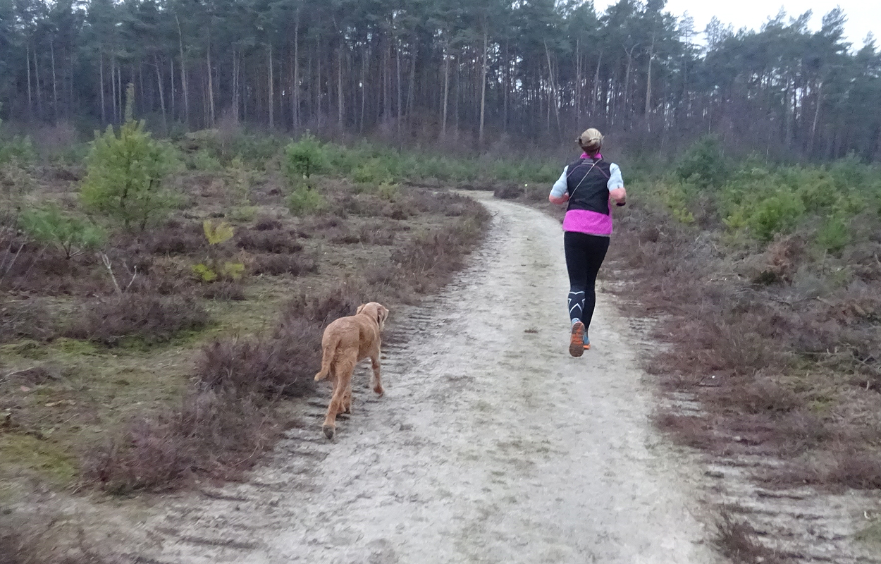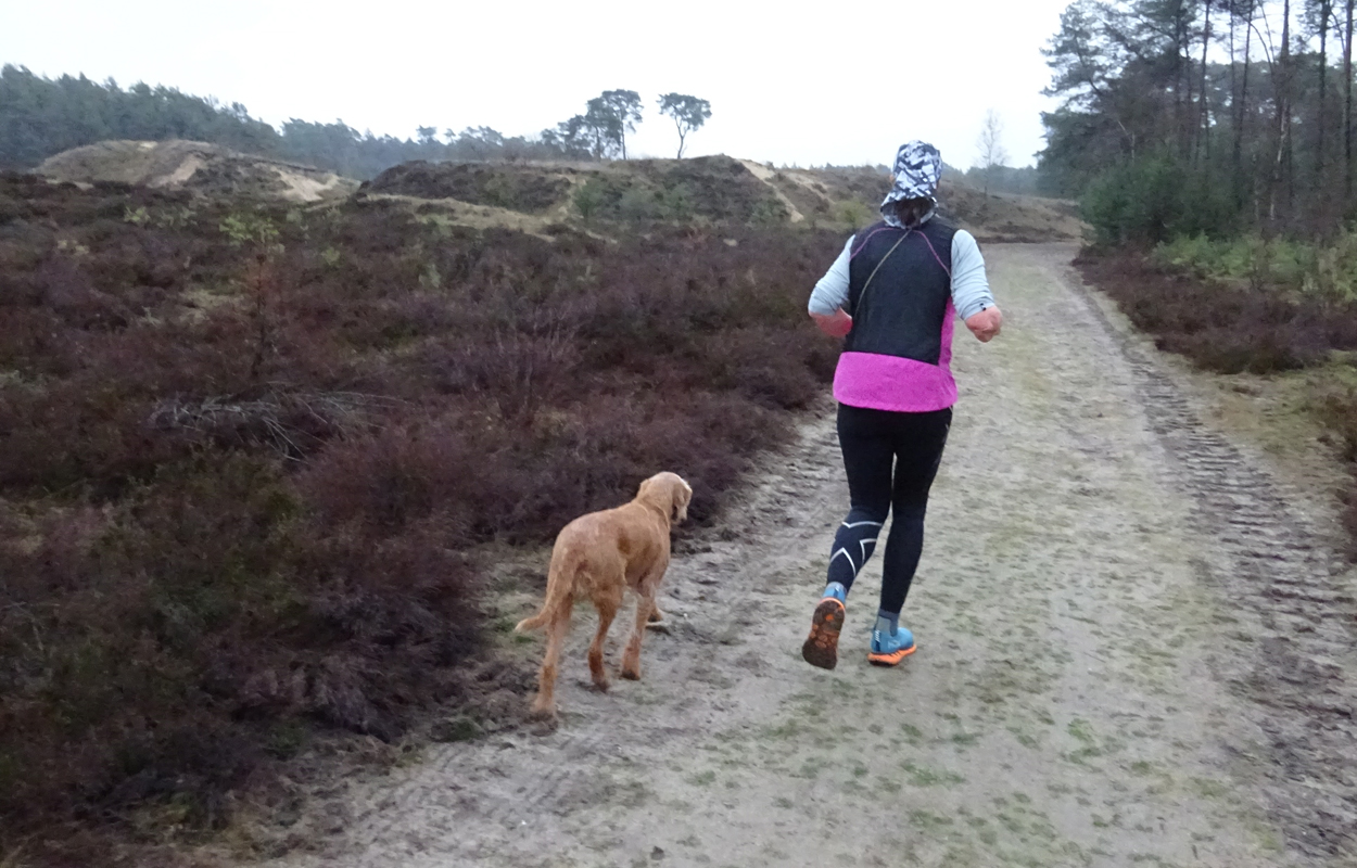 Vandaag wandel ik eerst met de woefjes door het bos aan de overkant. S. ligt nog even te maffen en dat is verstandig want we zijn allebei verkouden en hoesten. Tijdens het wandelen voel ik me weer opknappen van het buiten zijn. Ik had voor de zekerheid mijn renkleding ook al aangetrokken en dat is prima. Als ik thuis kom, staat S. het ontbijt te maken en de tafel gezellig te dekken. Maar we gaan toch eerst even op pad voor een rondje. Hij pakt de fiets en we sluipen weg omdat de pup in de kennel buiten zit en lekker rustig is. Ik besluit weer een 5 km rondje te doen op een tempo zoals dat gewoon lekker voelt en nog comfortabel is. Ik draag geen hartslag meter en doe dus ook geen MAF rondje. Dit is de derde ronde die ik zo loop. Zo wissel ik een beetje af met MAF, gewoon en 400-tjes. Maar met de verkoudheid ga ik geen 400-tjes doen natuurlijk. Eigenlijk wil ik vandaag een hele trage ronde lopen maar ik zie in de verte een loper en ik wil natuurlijk niet enorm achterblijven. Kinderachtig en bovendien onnodig want de man slaat linksaf terwijl wij rechtdoor gaan.